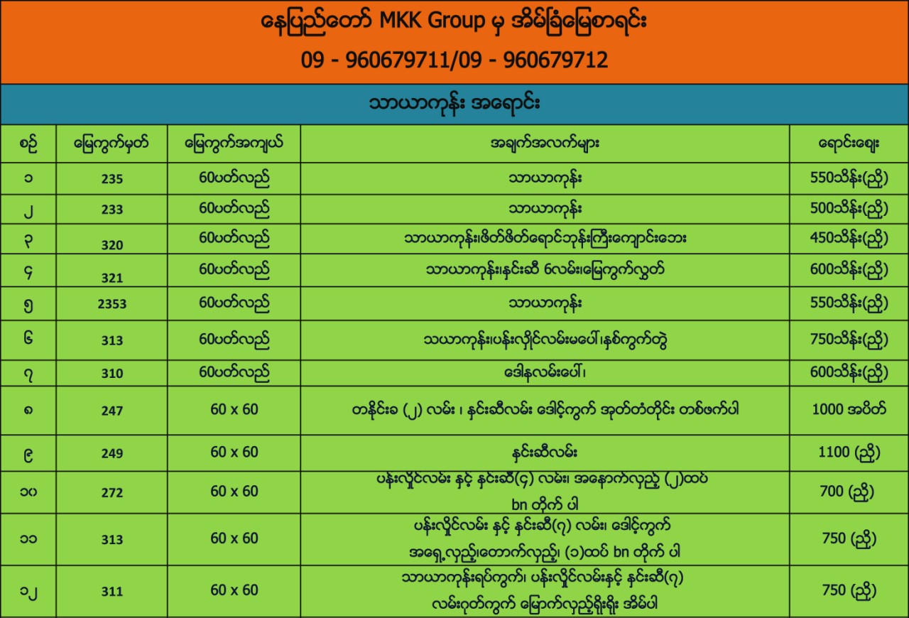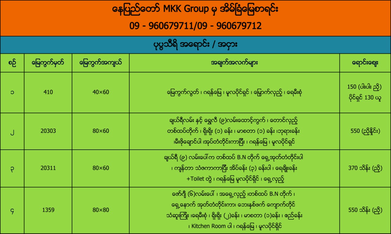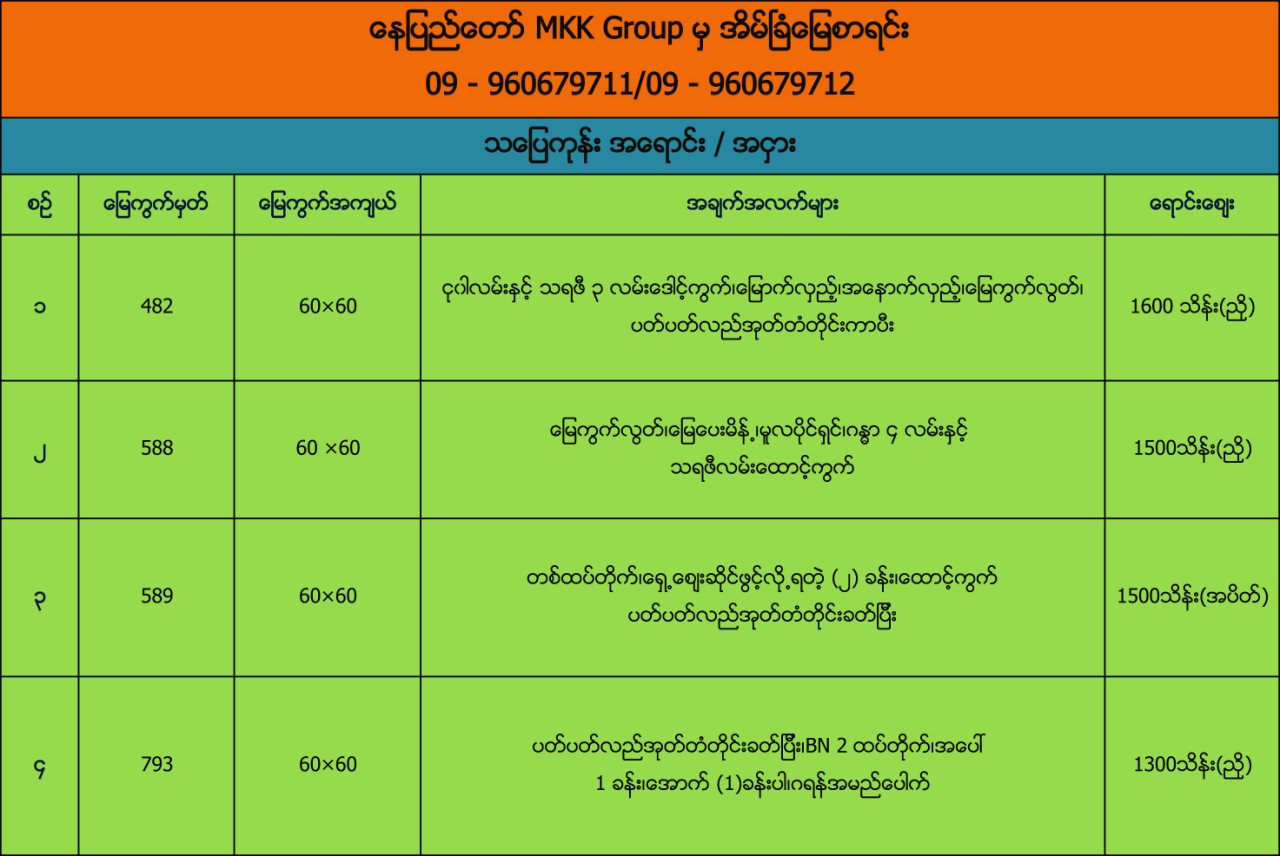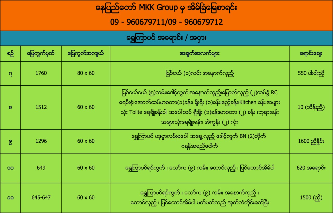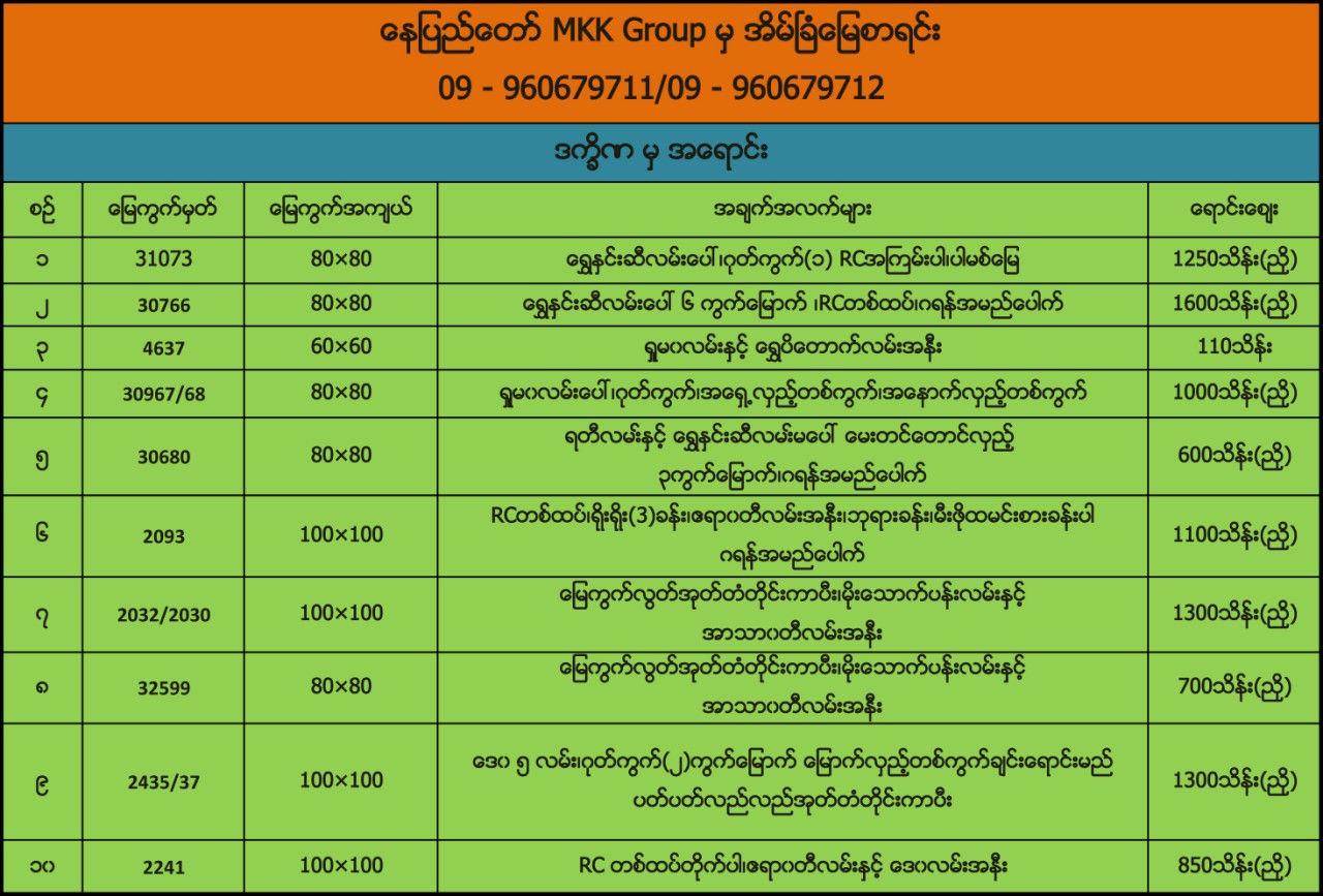 ေနျပည္ေတာ္ MKK Group မွအိမ္ျခံေျမစာရင္း