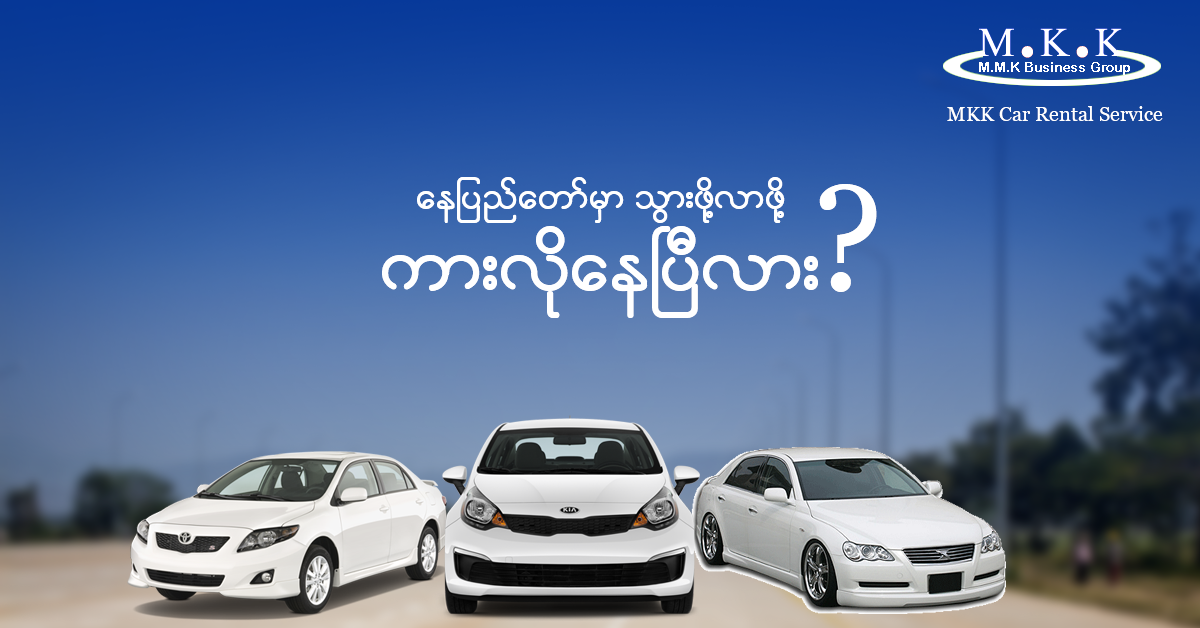 ေနျပည္ေတာ္ သို႕ ၾကြေရာက္ လာ ေသာ လူၾကီး မင္းမ်ား အတြက္ ေဈးနွံဳး အသက္သာဆံုးႏွင္႕ .၀န္ေဆာင္မွဳ အေကာင္းဆံုး ျဖစ္ ေအာင္ .. M.K.K. Car Rental မွ တာ ၀န္ယူ လက္ခံ ေဆာင္ ရြက္ ေပးလွ်က္ ရွိပါ တယ္..။ ျမိဳ႕တြင္းနယ္ ေ၀း ၊ လခ်ဳပ္ နွစ္ခ်ဳပ္ မ်ား ကို NGO မ်ား အတြက္ .သီးသန္႕ လက္ခံ ေဆာင္ ရြက္ ေပး လွ်က္ရွိ ပါ သည္..။