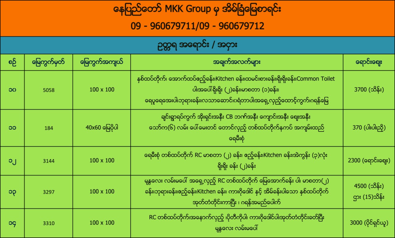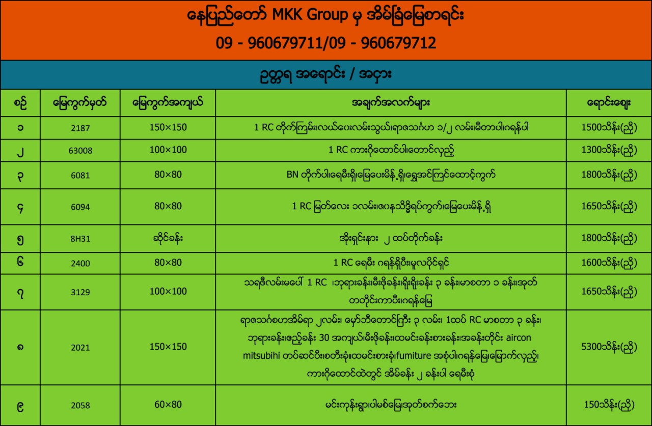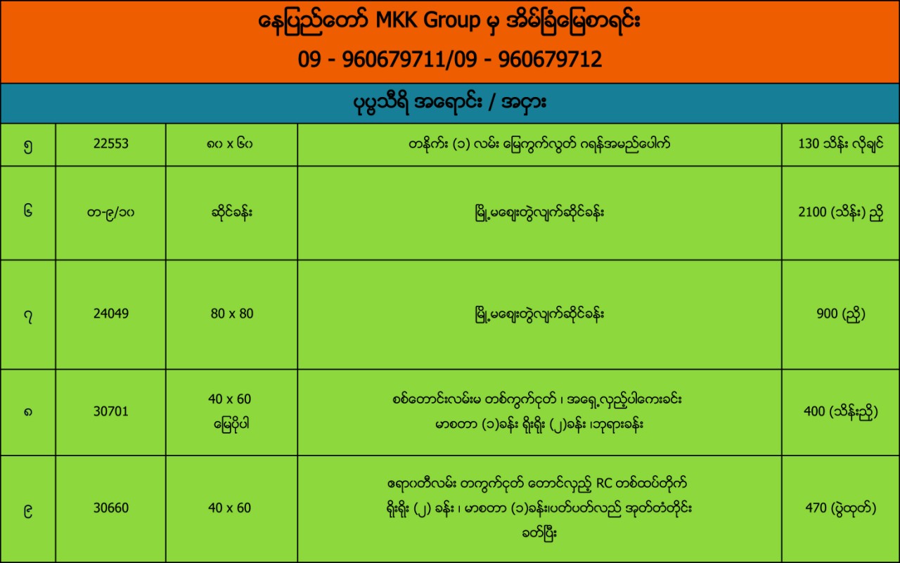 ေနျပည္ေတာ္ MKK Group မွအိမ္ျခံေျမစာရင္း