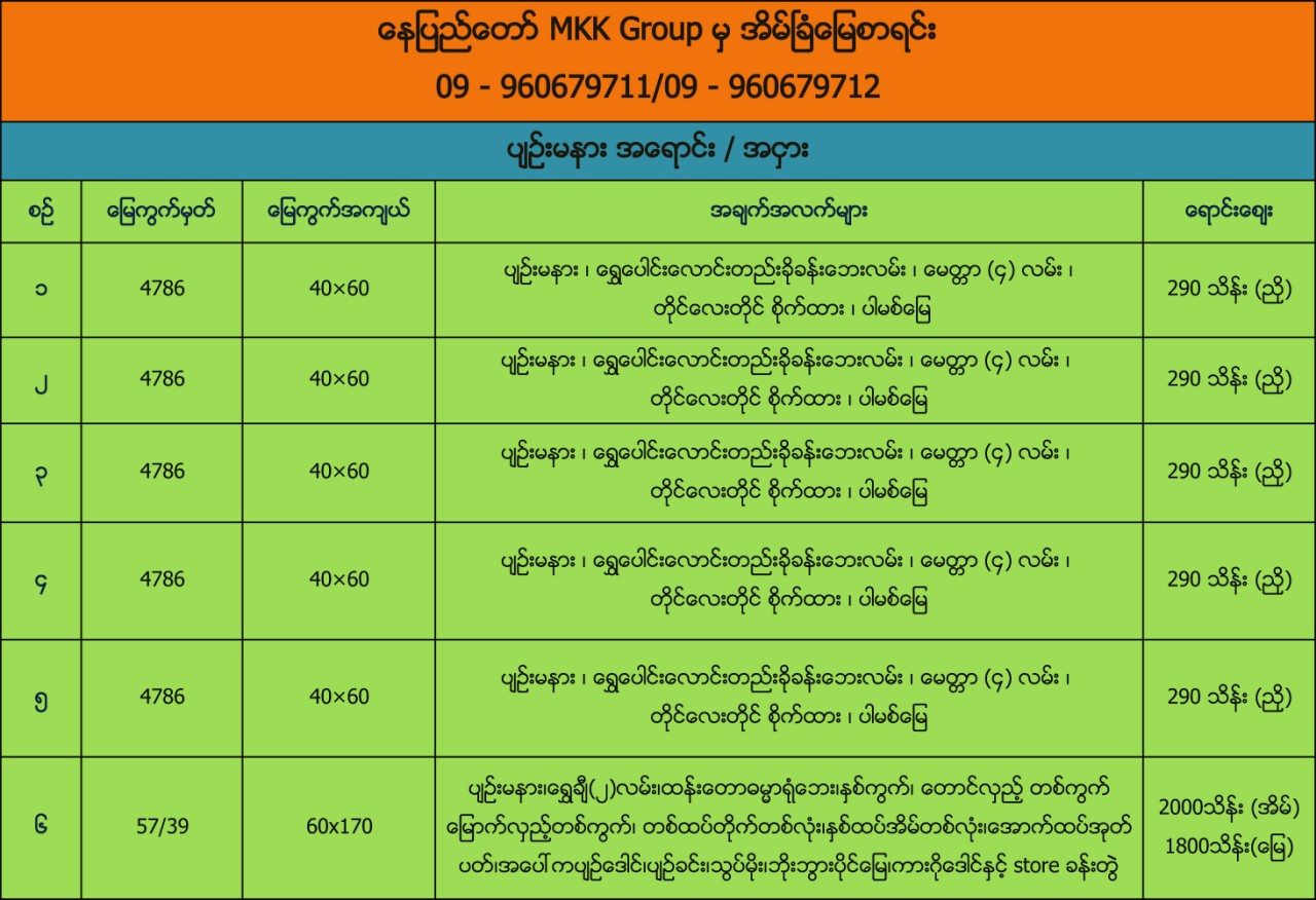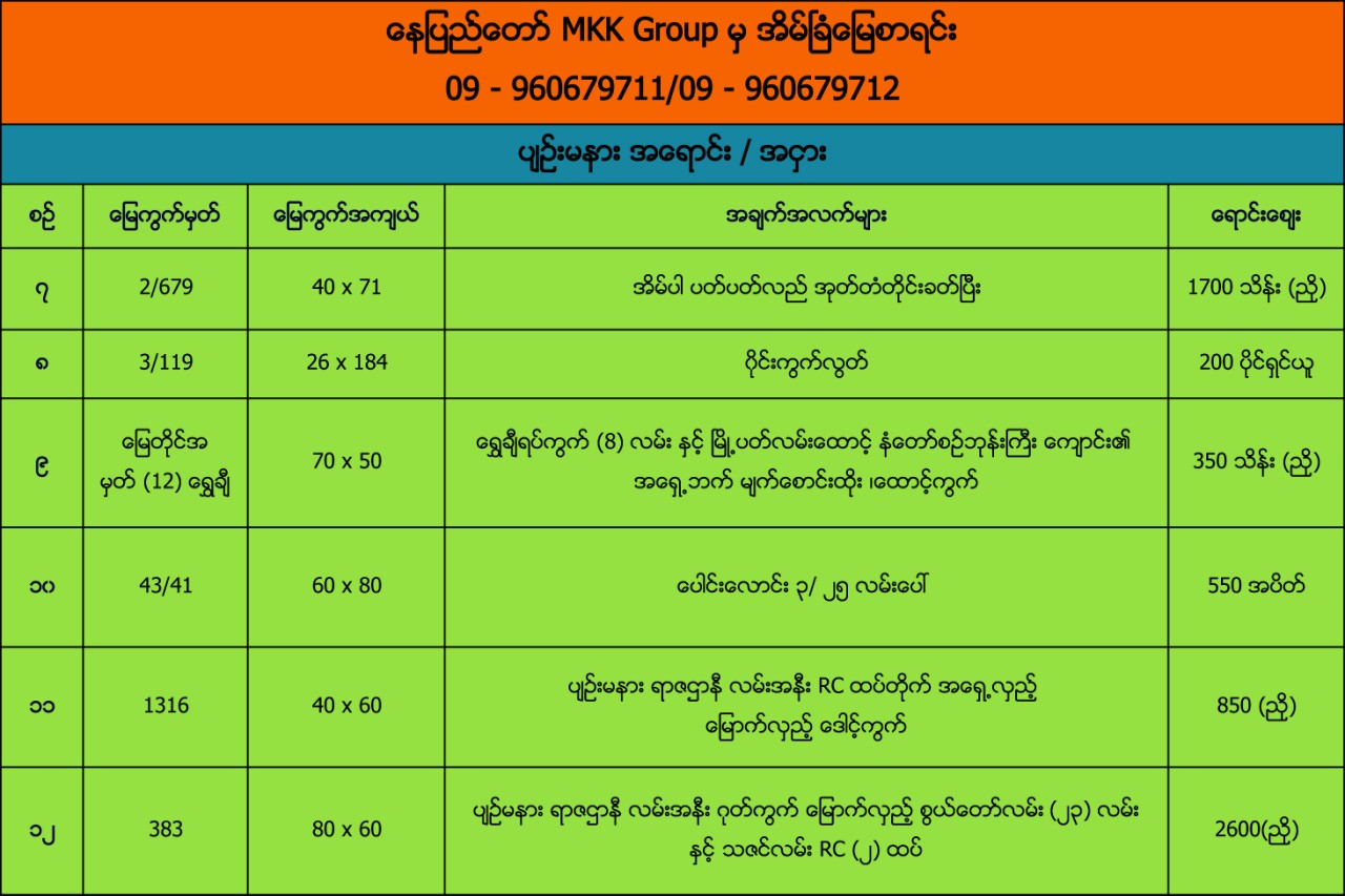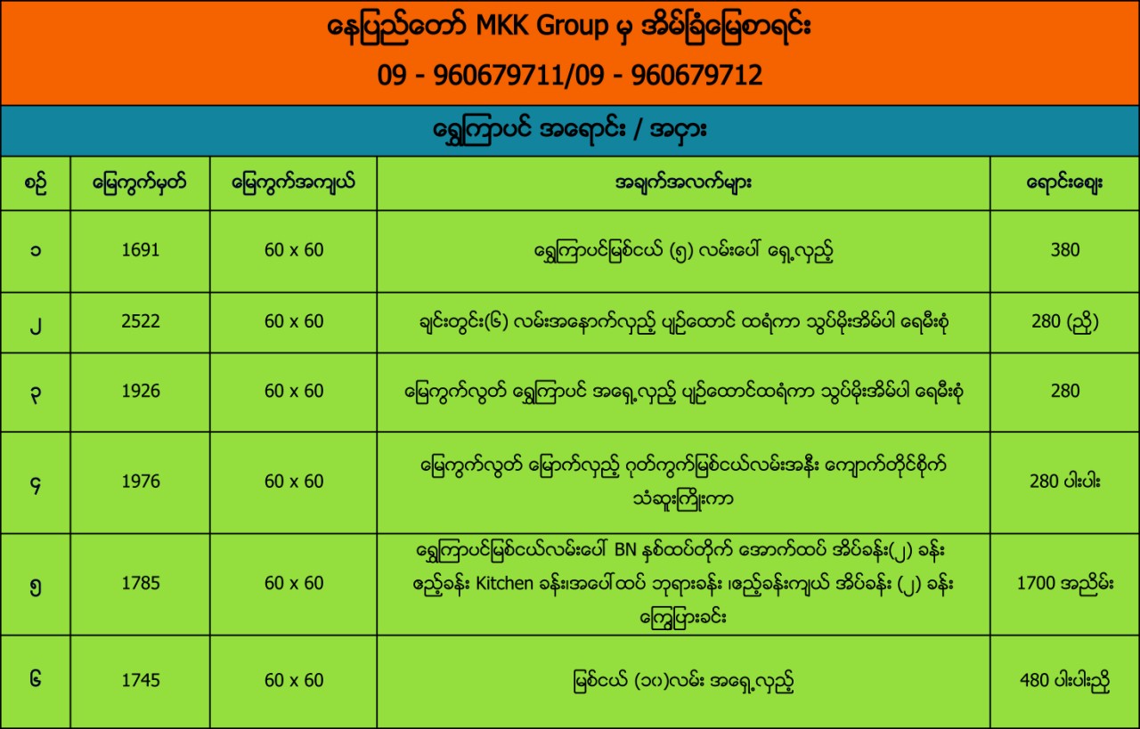 ေနျပည္ေတာ္ MKK Group မွအိမ္ျခံေျမစာရင္း